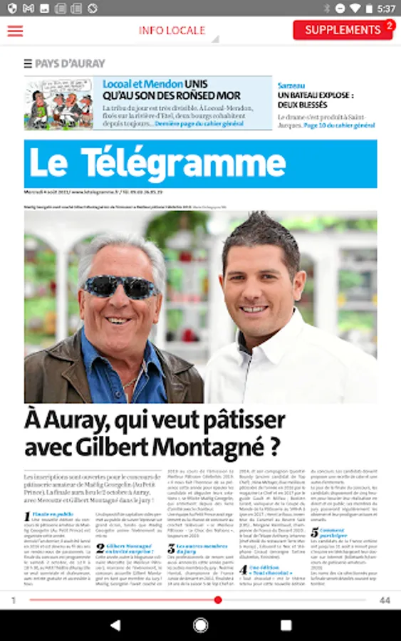 Every day, before 5 a.m., find your local edition of the newspaper Le Télégramme.