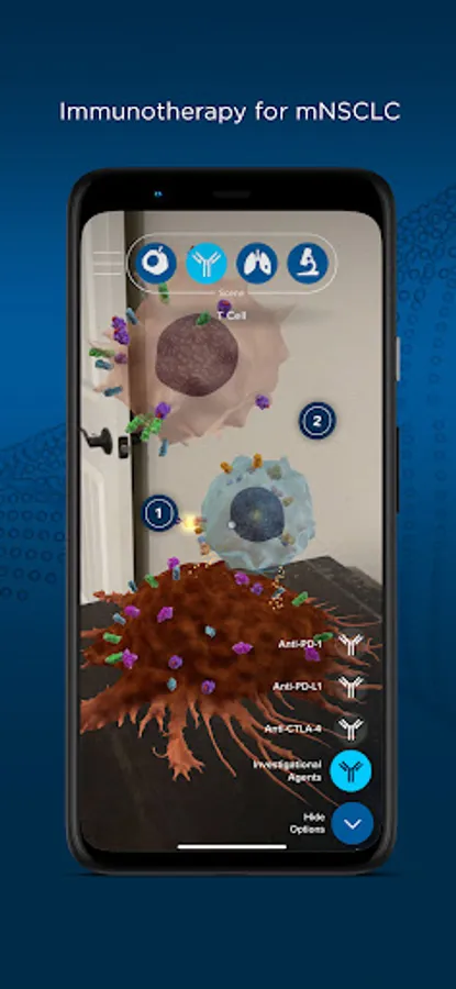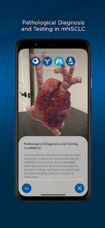 Pinch in and zoom out to scale, rotate, raise, or lower the models; and walk around the 3D objects to view animations up close. This app was created for medical oncologists, oncology nurse practitioners and physician assistants, pulmonologists, pathologists, and other healthcare professionals who are involved in the care of patients with mNSCLC.