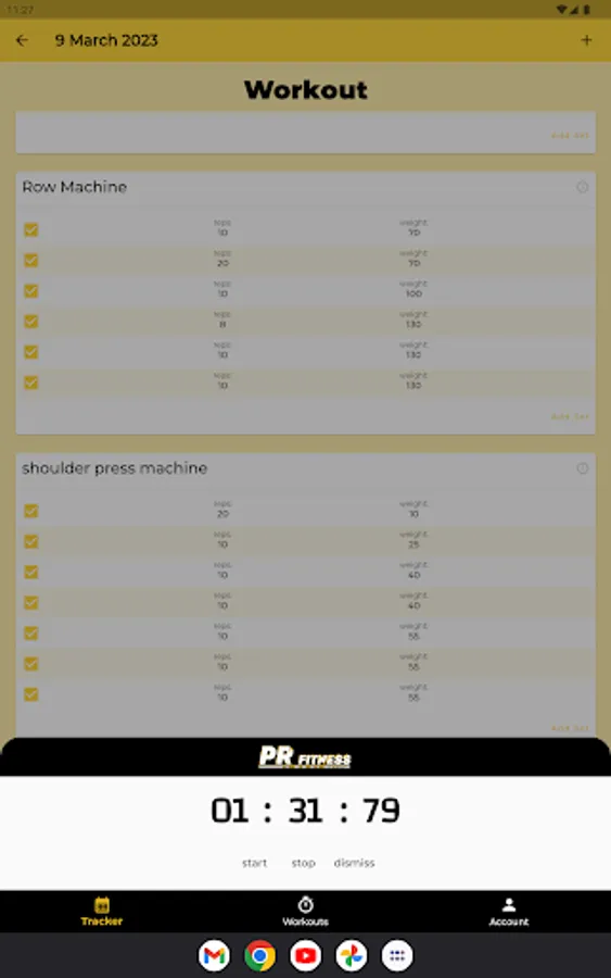 - Tracking: it is important to track your results along your fitness journey to success. PRFitness enables you to easily and quickly record your workout as you go.