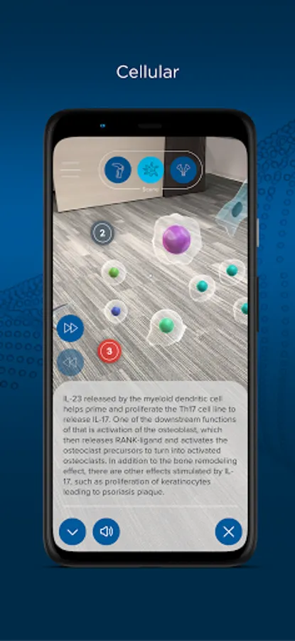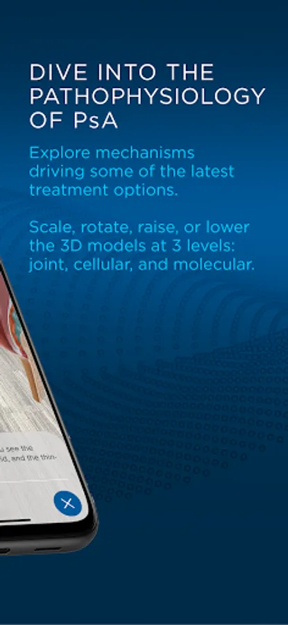 With ImmerseRx: Psoriatic Arthritis, interact with the pathophysiology of PsA and therapies at three levels: joint, cellular, and molecular. Pinch in and zoom out to scale, rotate, raise, or lower the models; walk around the 3D objects to see the animations up close. This app is supported by an educational grant from Lilly. For further information concerning Lilly grant funding, visit www.lillygrantoffice.com.