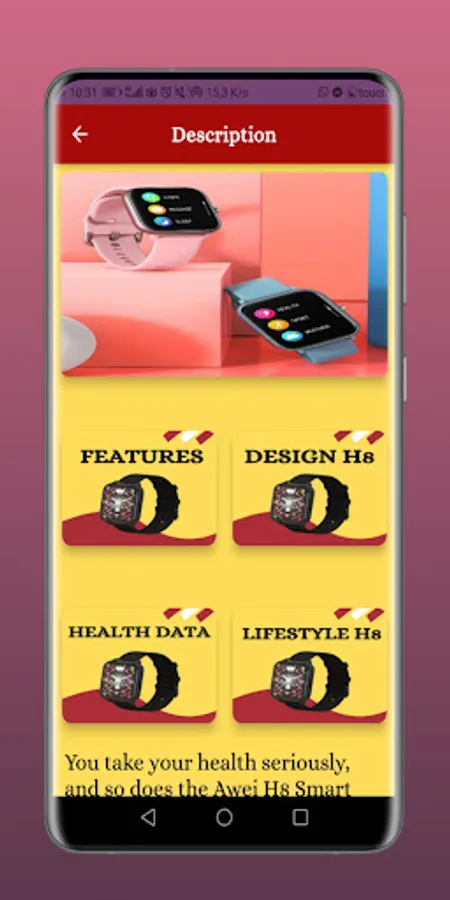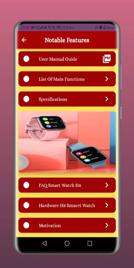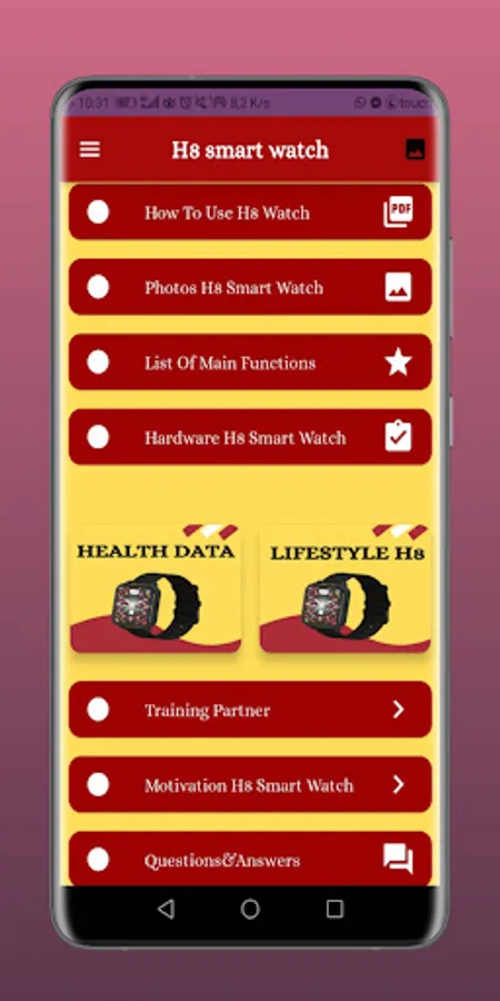 This app gives you information about the H8 smart watch guide to get to know your watch.