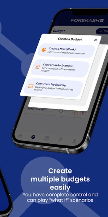 You do not get just 1 budget in our budget management app. Copy from one of your existing budgets and see what different income & expense items do for your future cash flow...that helps you know if you can save or spend more or less. Why? In real life, you need to be able to play "what if" scenarios with your budget. "What if" my job paid more or less, or "what if" I didn't work for a month? Forekash helps you see that. "What if" I need to save more for car maintenance or travel? Forekash helps you see the impact of all of those scenarios on your future cash flow.