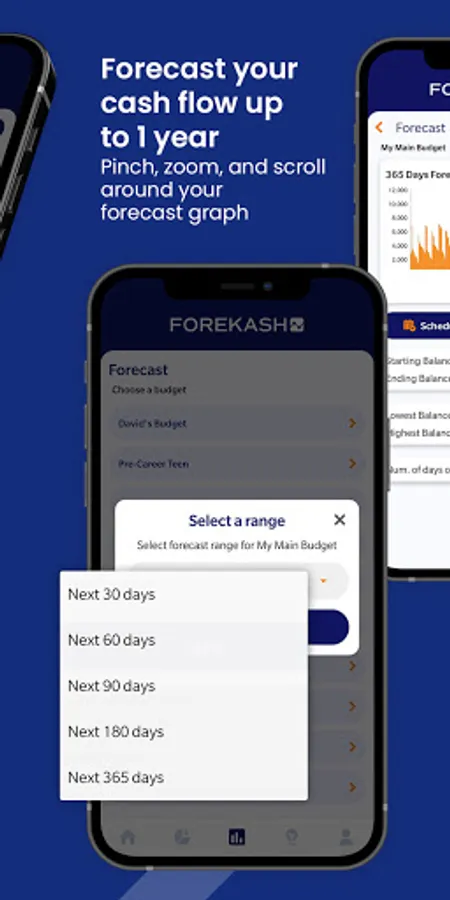 Forekash believes the FUTURE is the best budgeting period based on your FUTURE plan (not based on the money that is already gone). The cash flow that Forekash shows you is what your daily balance will be every day in the future (up to 1 year) based on your plan (your budget). Forekash is your cash organizer and finance manager to make better and more fruitful financial decisions in the future. With the forecast you can also make Forekash your weekly, bi weekly budget planner, as well as a monthly budget planner.
