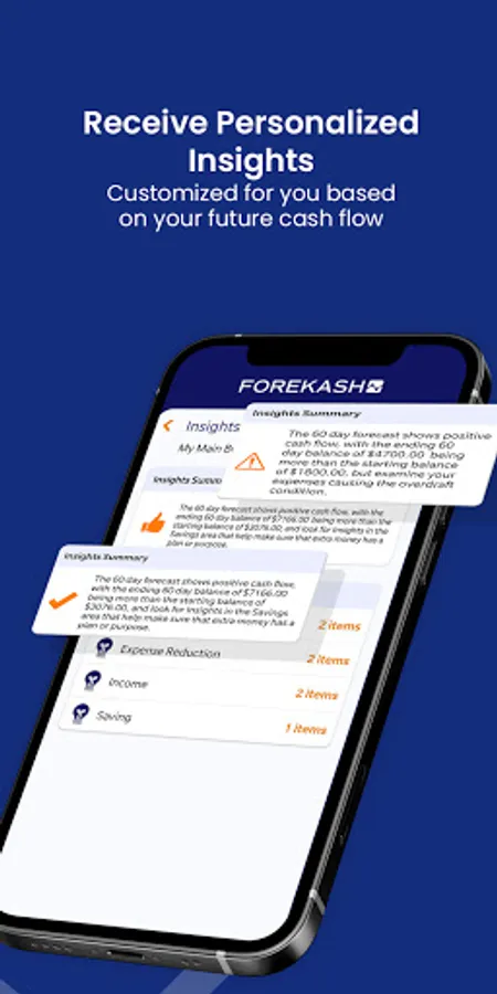 As a personal budget manager, Forekash provides insights that include suggestions for improving your cash flow, reducing expenses, improving your income, and saving.