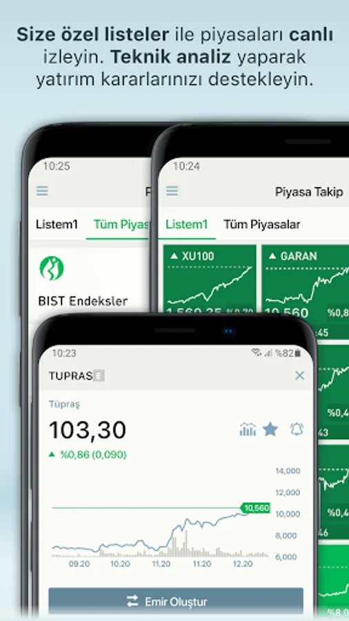 By downloading our TEB YATIRIM PRIME application, you can watch BIST, VIOP and all market data with a delay of 15 minutes for free. By requesting a data broadcasting package, you can benefit from instant and in-depth market data.