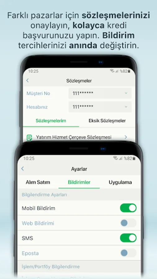 You can trade stocks, VIOPs and warrants and follow the investment markets. You can approve additional contracts on the application, monitor your transaction history and make your annual reconciliations.