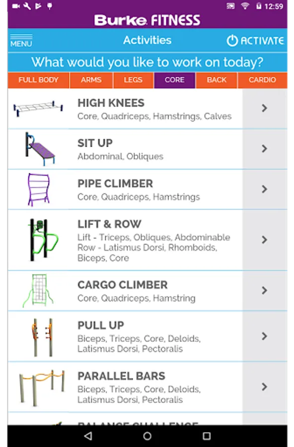 Welcome to the Burke Fitness Community where you can use both ELEVATE® Fitness Course and ACTIVATE® Fitness Circuit to improve your fitness no matter what you’re level. From fitness beginner to fitness mature, you will be provided with different levels of exercise for each of the components. The simple to follow instructional videos will help you get the most out of your full-body, outdoor workout. Find courses, connect with other users, log your workouts and compete against yourself and others by using the Burke Fitness app.