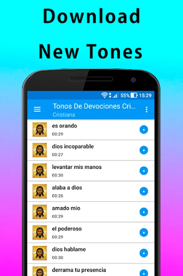 Download now this new application of tones and ringtones of praise and Christian adoration 2022 for your cell phone totally free. The easiest way to listen to Christian music tones you can guess the tones songs to play the ringtones for cell phone, when entering a call. Sounds for notifications and alarms to personalize all the sounds of your phone with genres like: gospel, soul Christ, Christian ballads, Christian hip hop, reggae, Christian electronic music, Christian pop, Christian rock, Christian metal, jazz, Christian country, blues , Christian vallenatos.