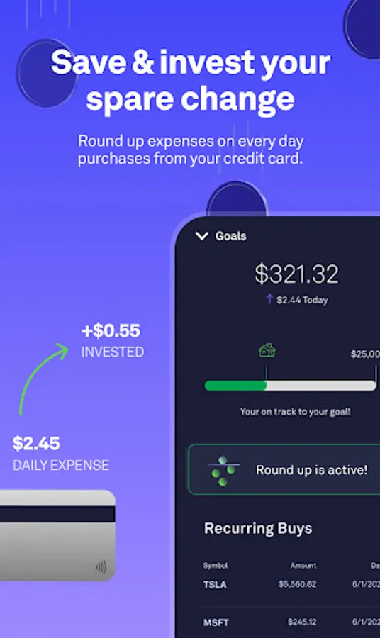 Now you can save, plan and invest by activating a Goals account. Using roundup, recurring deposits and buys to reach your financial goals.