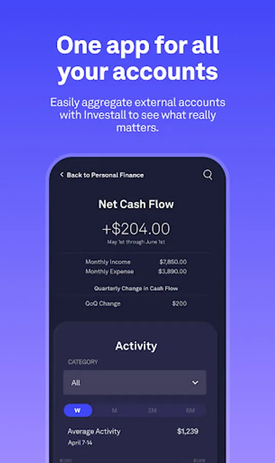 Investall is the only app you need to take charge of all your finances. Paired with the leading brokers for speed and efficiency trading thousands of stocks, bonds, options with the latest automated AI technology from years of research to assist you in your journey to financial freedom.