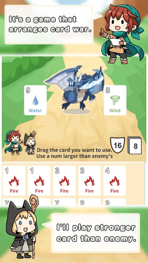 If the card you play is larger than your enemy's, you can destroy his deck; if it is lower, you lose your deck.