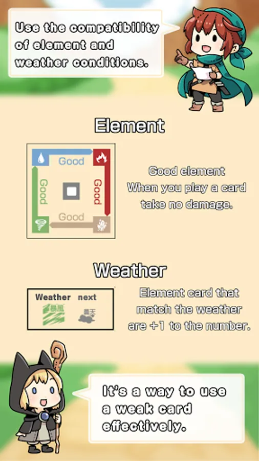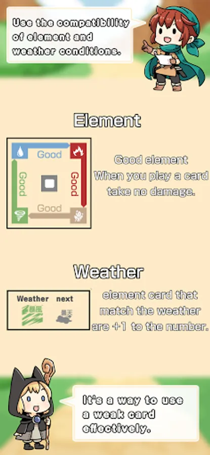 If you play a card with an advantageous element, you become invincible and take no damage.