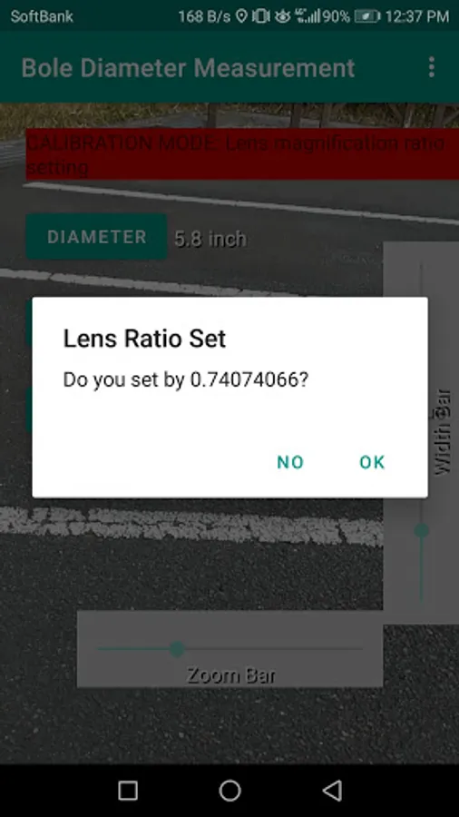 4. Tap SET button, then lens magnification rate is recorded, and move to measurement mode