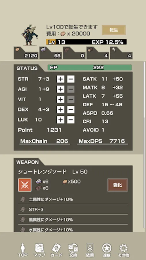 ◆ Customize your character freely with the status point system