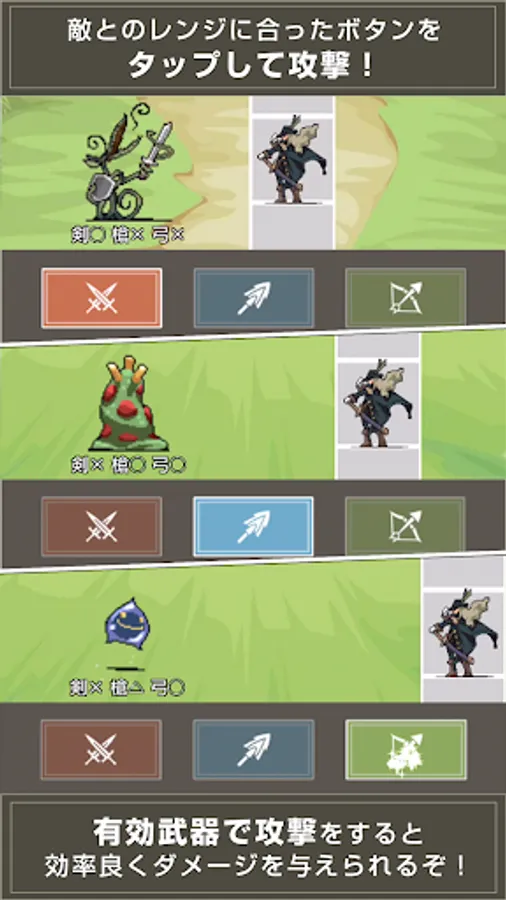 -Just tap the attack button that matches the range with the enemy!