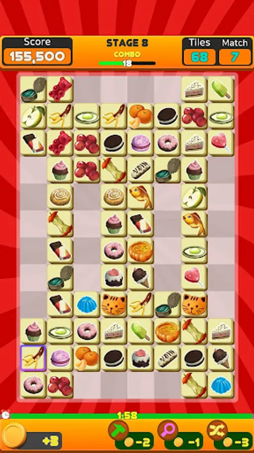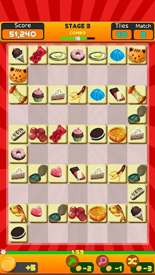 Onet can be enjoyed on Easy, Normal and Hard difficulty.