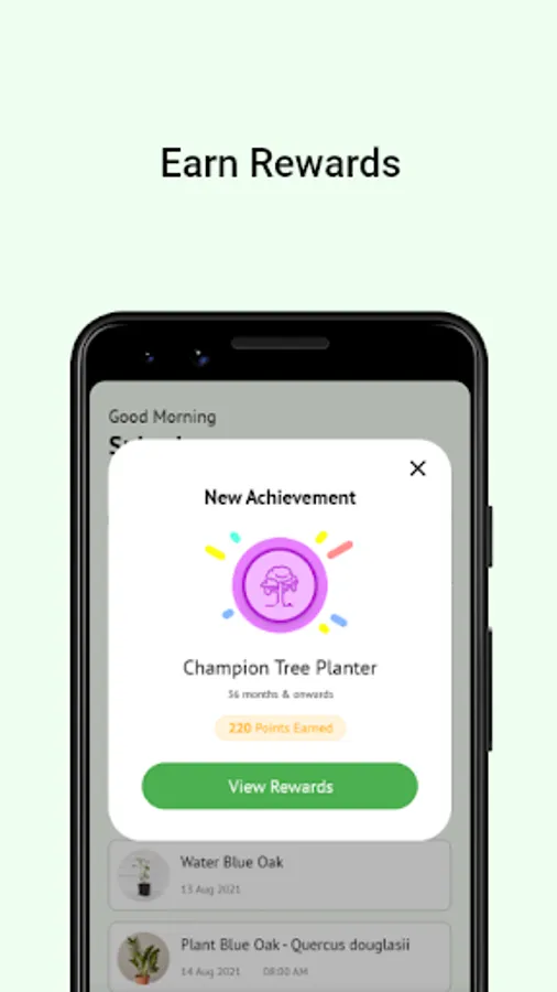 To incentivize the application and its use, a rewards programme is also a feature of the application which will allow participants to earn points for correctly following the maintenance guidelines and reporting on the progress of their trees at the specified intervals.