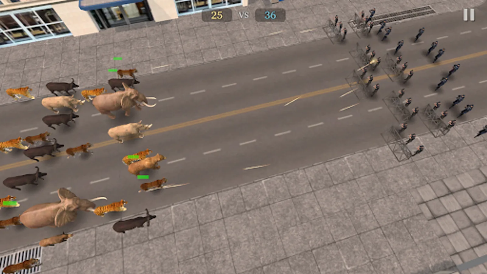 Lead an animal legion - Wolf, Boar, Bear, Tiger, Lion, Rhinoceros, and Elephant. As you ascend the ranks through merging, your army becomes more formidable, securing your advantage in battles against human forces.