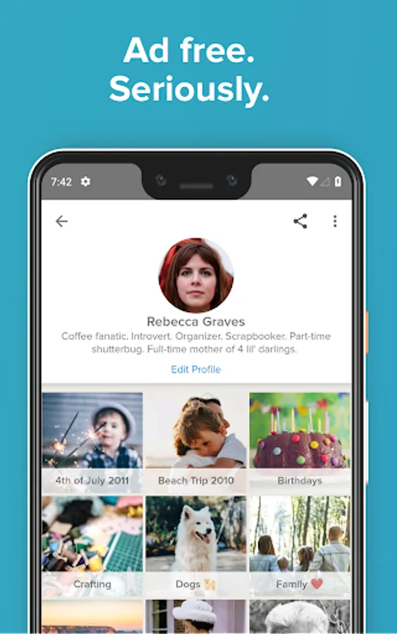 • Ad-free, seriously: We never use third-party ad platforms. We will never sell or mine your data, your memories are yours.