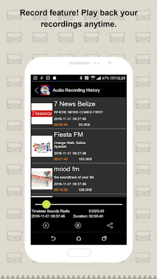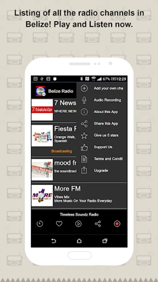 Enjoy the app anytime. Belize Radio offers different radio channels in Belize to users. You can easily find and listen to the broadcast anytime anywhere. Choose and Click to Listen brings you the convenience app experience.