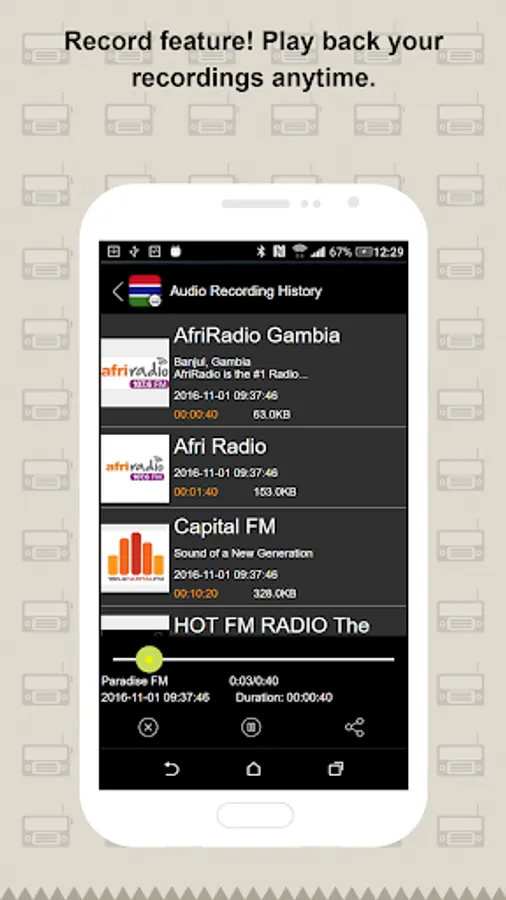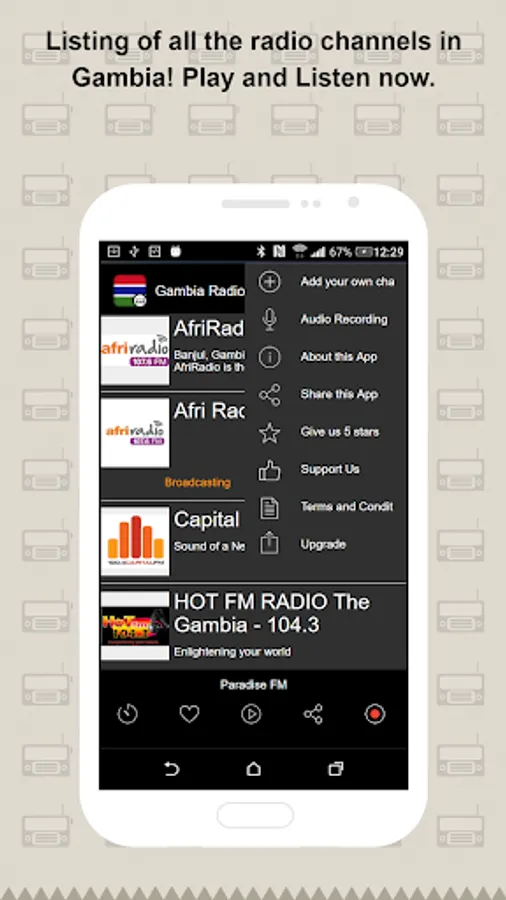Enjoy the app anytime. Gambia Radio offers different radio channels in Gambia to users. You can easily find and listen to the broadcast anytime anywhere. Choose and Click to Listen brings you the convenience app experience.