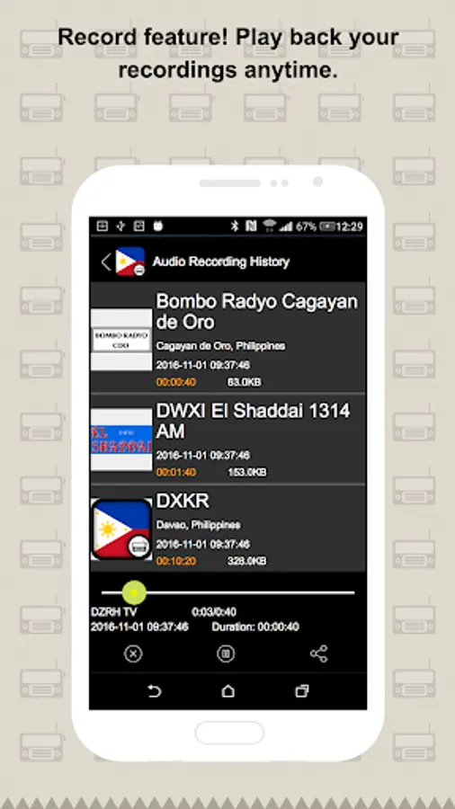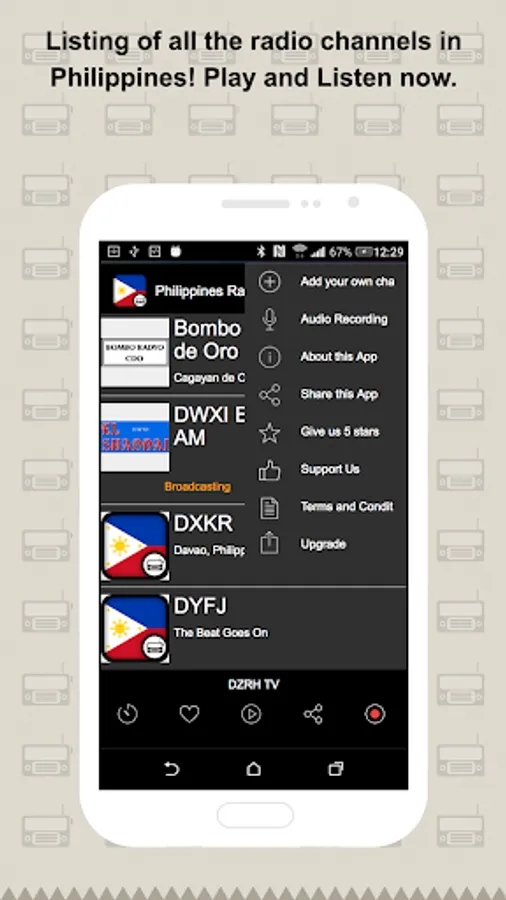 Enjoy the app anytime. Philippines Radio offers different radio channels in Philippines to users. You can easily find and listen to the broadcast anytime anywhere. Choose and Click to Listen brings you the convenience app experience.
