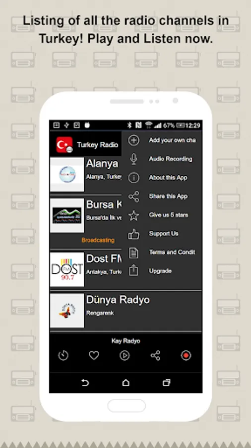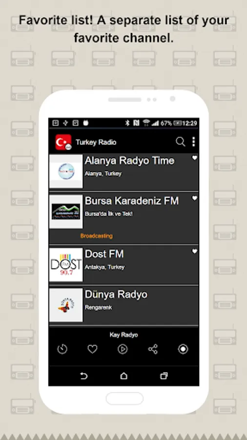 Enjoy the app anytime. Turkish Radio offers different radio channels in Turkey to users. You can easily find and listen to the broadcast anytime anywhere. Choose and Click to Listen brings you the convenience app experience.