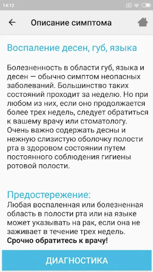 The information in the application was compiled with the participation of medical specialists, but is for informational purposes only and does not replace the doctor. If you feel unwell, seek medical attention immediately.