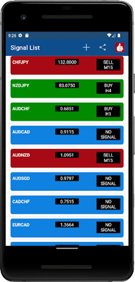 You can follow the signals on xauusd, eurusd, usdchf, usdcad, eurgbp, gbpusd, brent oil, wti oil, natural gas, nas100, us30, spx500, ger30 and many more instruments by adding them to your favorites.