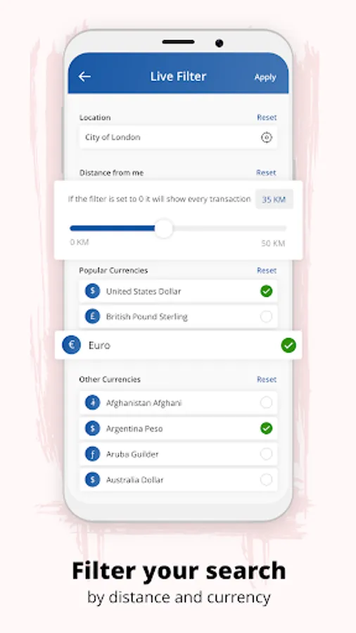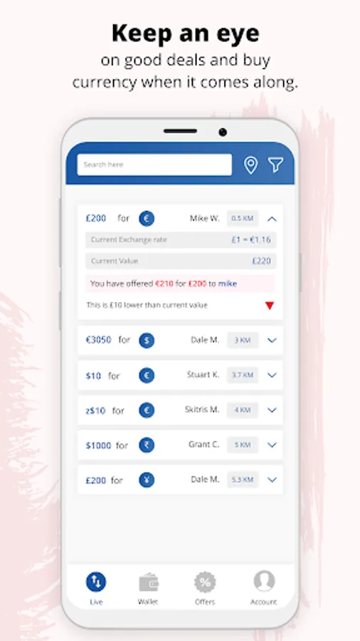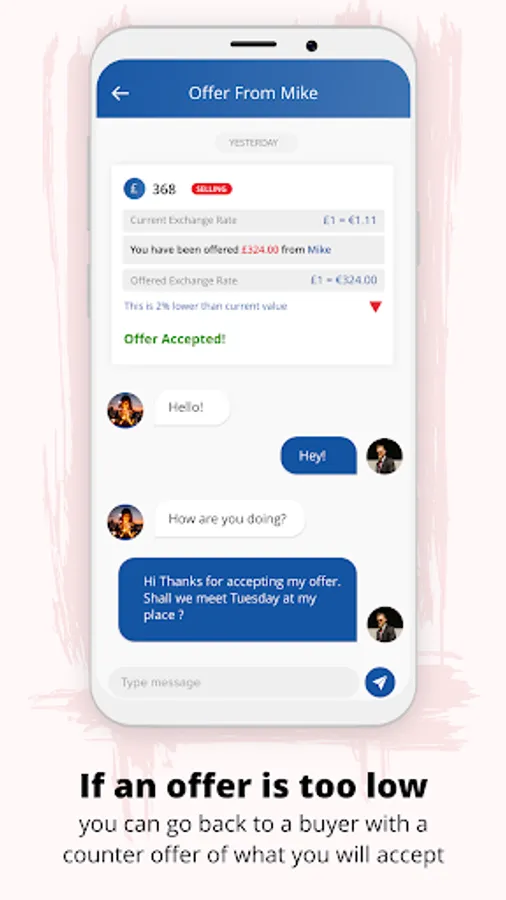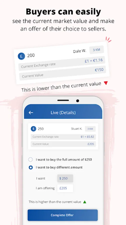 Forextra is a unique app that allows users to buy, sell and make offers on currencies with other individuals. You can search by your location or a set location to see what is available to buy and offer on. When selling any excess currency you may have in your wallet you can set a price you want to achieve. Once an offer has been made by you or you have accepted an offer on currency you can chat in message system and agree to meet and exchange your currencies in a safe place.