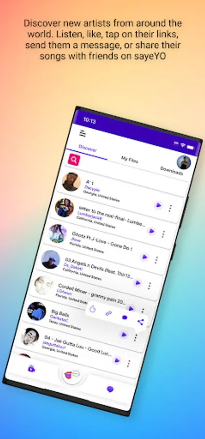 Don’t let your songs or videos sit on cloud storage platforms and waste away! Put all your song, audio, photos, and video files on sayeYO! You can store your song files privately or you can make them public and allow app users the opportunity to hear your music. Connect, communicate, and collaborate with a global community on the sayeYO app.