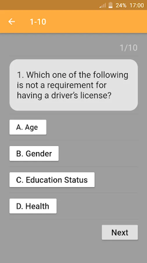 -> An app that contains questions that will prepare you for your driver's license exam.