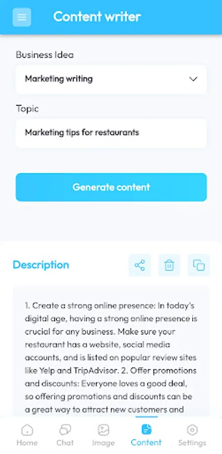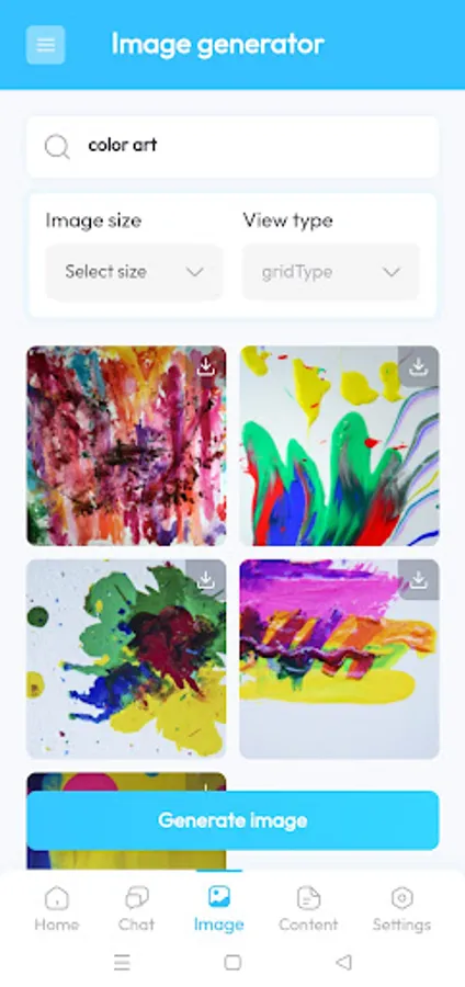 Artificial Intelligence App using ChatGPT technology for creating Content, generating AI Art, generating AI images and Chatting.