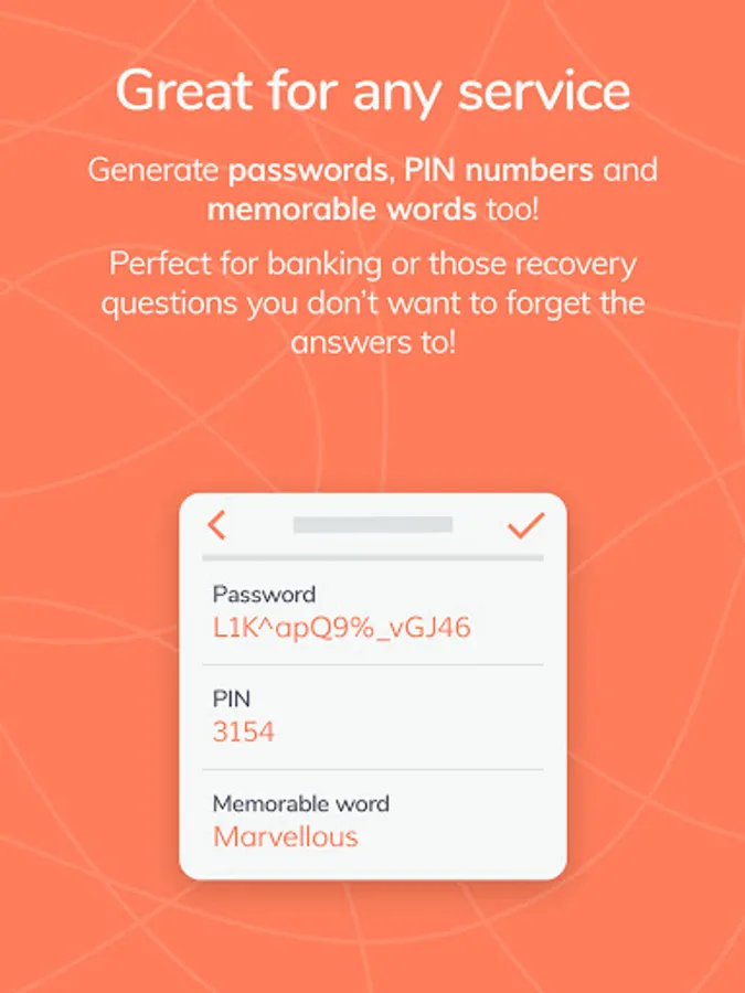 - Generate Passwords, PIN numbers and Memorable words