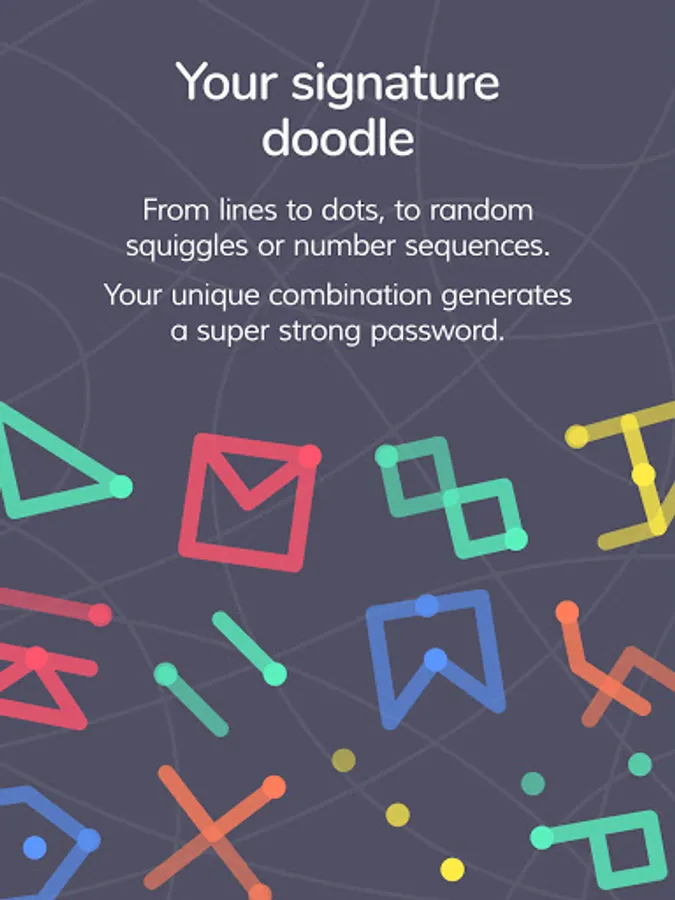 - Multi-layered doodle / pattern used as key to generate passwords making it incredibly secure