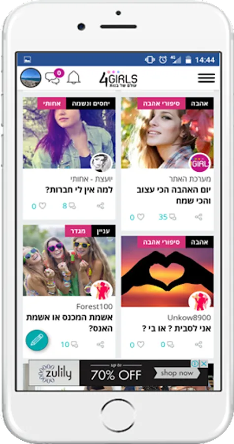Social app for girls only! Social network of young girls and women, with forums, chat app, games for girls and hundreds of thousands of real posts maturing, love, fashion, grooming, beauty, music, books, celebrities, Series, Women Shopping Online ... surfers enjoying Advisory Council including professional beautician, dietician, social workers, counselors and other gynecological respond to questions about diet, relationships, make-up, recycling, self-esteem and body image, and more ... like your best friend, just an app