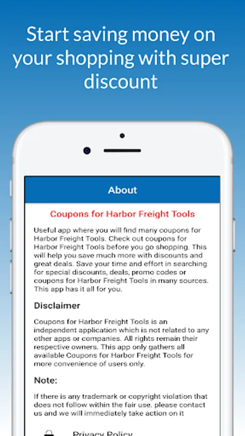 By using Coupon for Harbor Freight Tools app you can save a lot of money