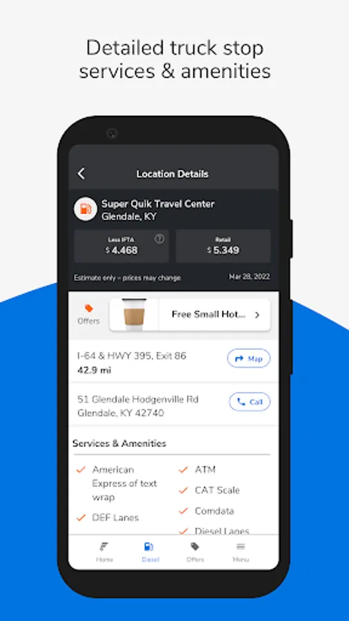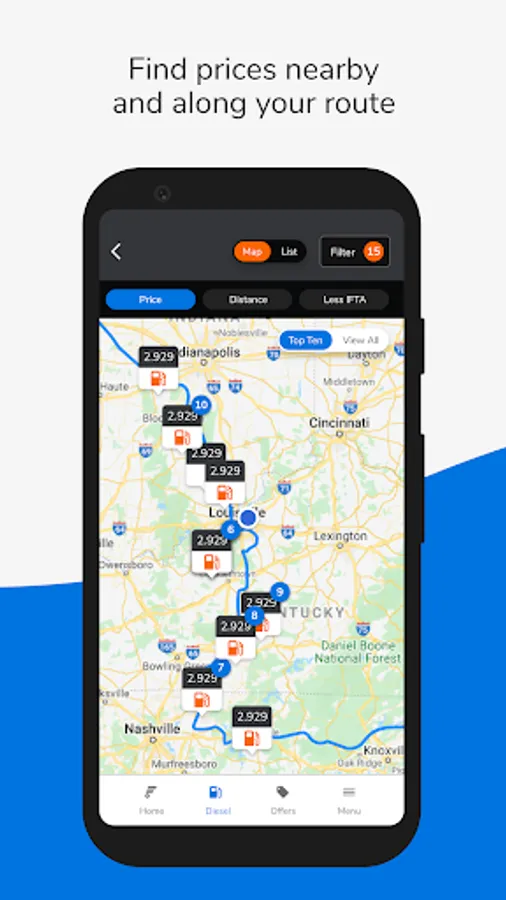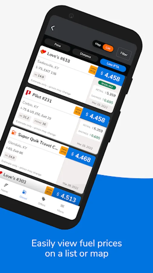 Fuelbook is a simple but powerful tool for searching truck stop diesel prices nationwide. Quickly find diesel prices nearby or along your route with the Fuelbook app.