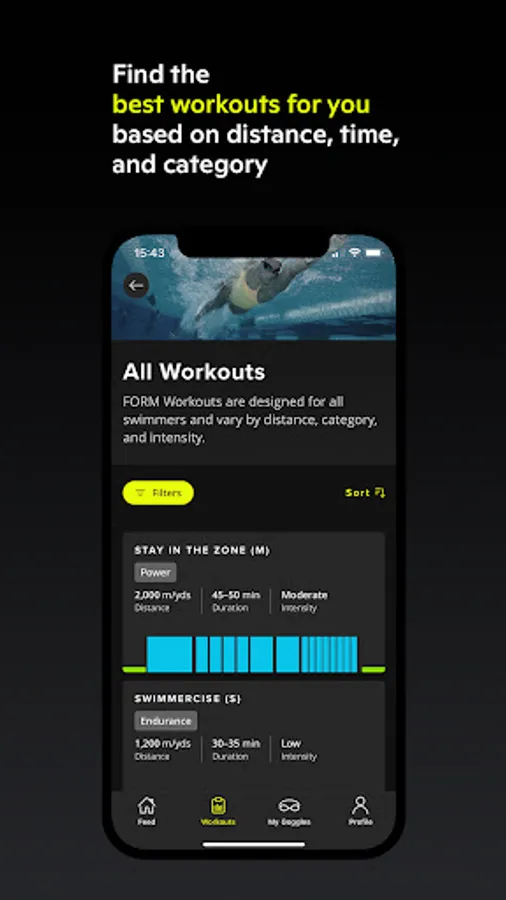 Built for the FORM Smart Swim Goggles. Get the most out of your swims with guided workouts in your goggles.