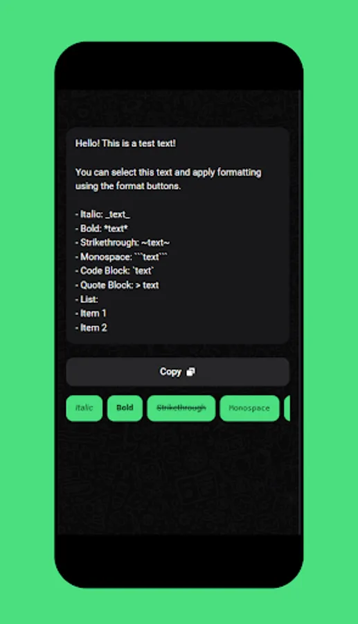 From bold and italics to quotes and lists, effortlessly enhance your messaging experience. Create eye-catching messages with a touch of style.