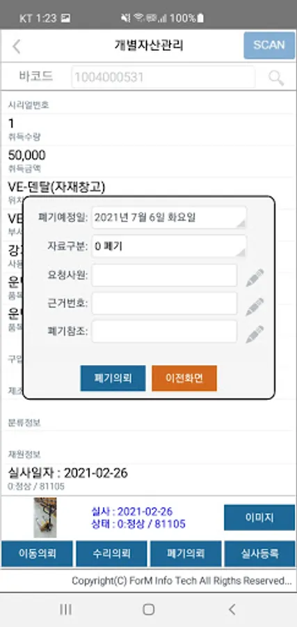 It is used when inquiring asset information, requesting repair, requesting movement, requesting disposal, or registering due diligence.