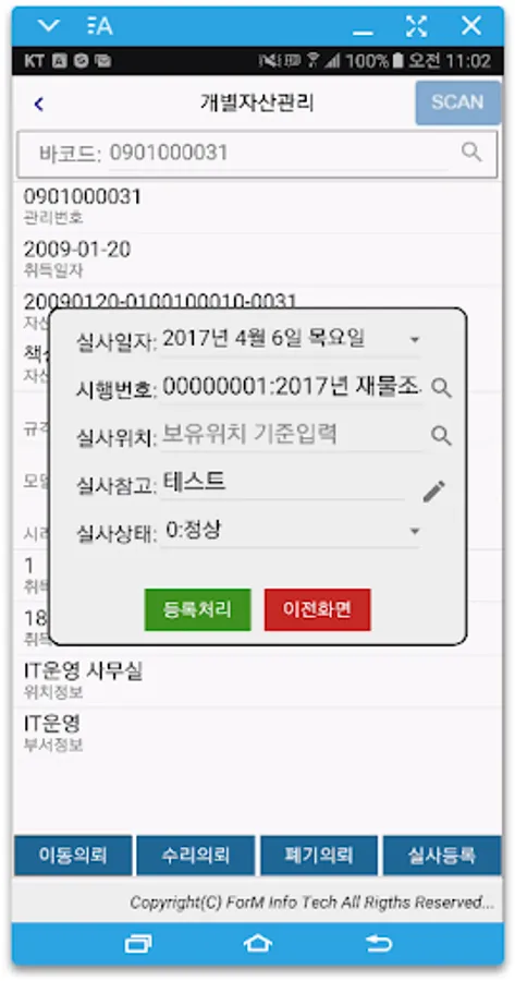 Inquire current asset information or request repair / request for movement / request for disposal / registration of property investigation
