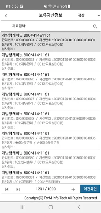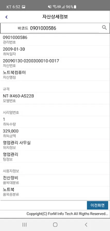 Linking the barcode information with the cloud asset management system uTAMS to query the current asset information or