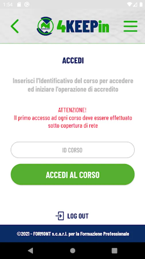 4KEEPin is an application released by FORMONT s.c.a.r.l. for Professional Training, which allows real-time monitoring of the accreditation of participants in training courses, organized by FORMONT, through recognition with a QR code.