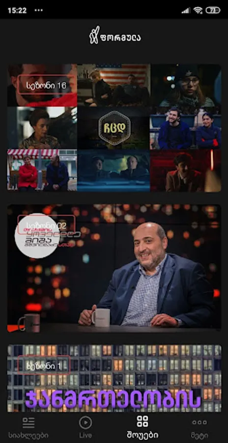 Formula is a TV channel that exclusively airs the highest rated TV series "My Wife's Girlfriends'' Here you will find other Georgian and foreign TV series, films and entertainment as well as public-political programs.