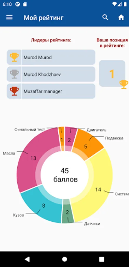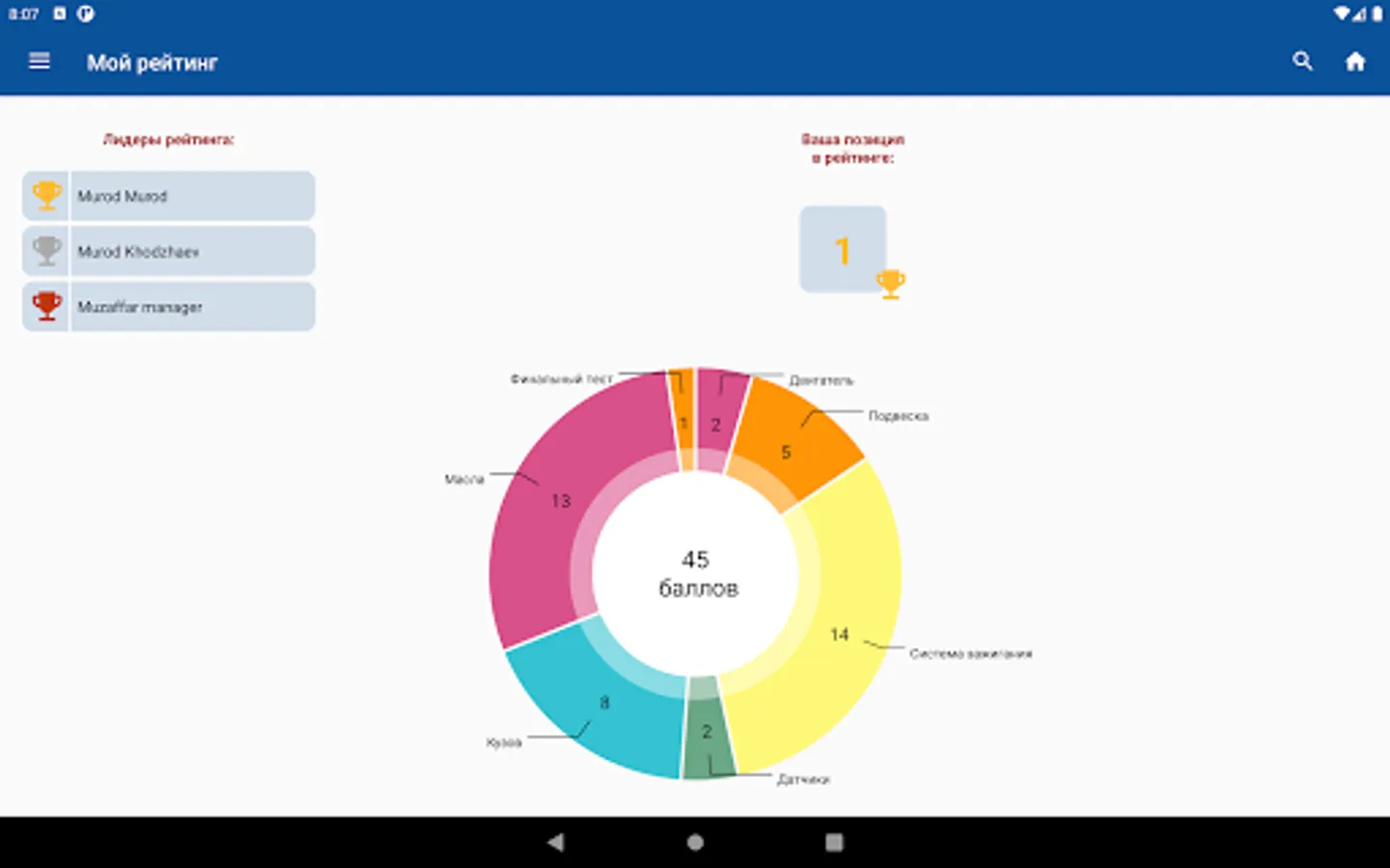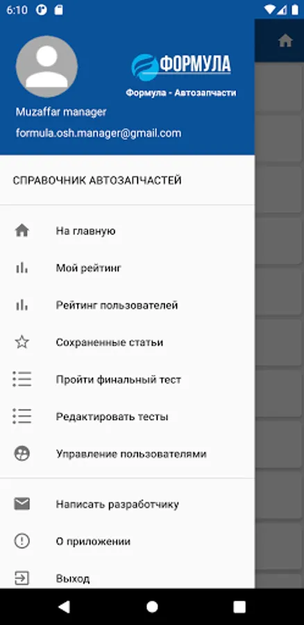 Application for employees and trainees of the "Formula" company in Osh, contains such functions as: