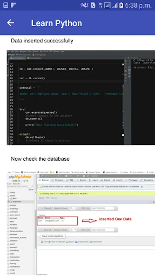 python mysql database programming, python sqlite database programming and also python object oriented programming. python oop is consist of classes, objects, polymorphism, abstraction, encapsulation and inheritance topics