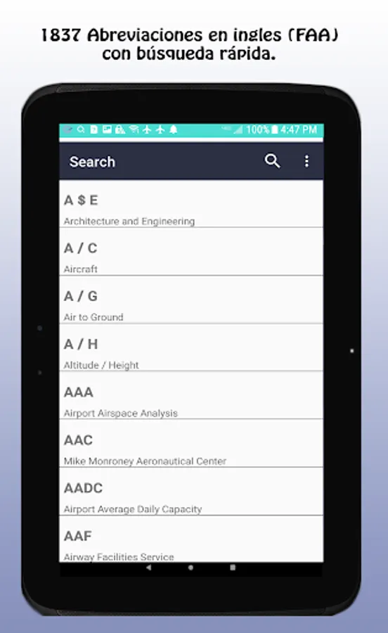 * 1100 Abbreviations in Spanish (PIA) with quick search.