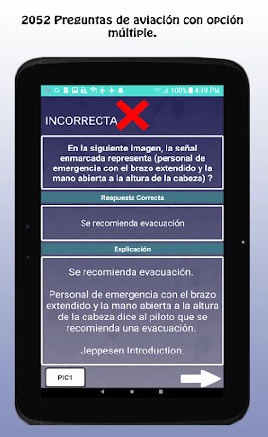 PilotProTest Lite allows statistical monitoring of the exam in real time, which allows us to know our% of correct answers and errors.