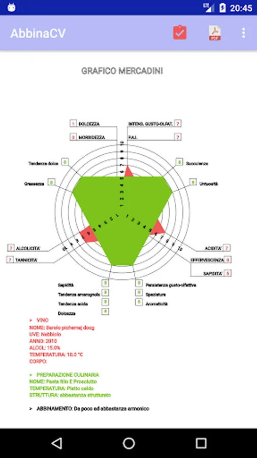- The inclusion of wine data or the automatic loading of data from an already stored tasting through my app Degusta FoRo
